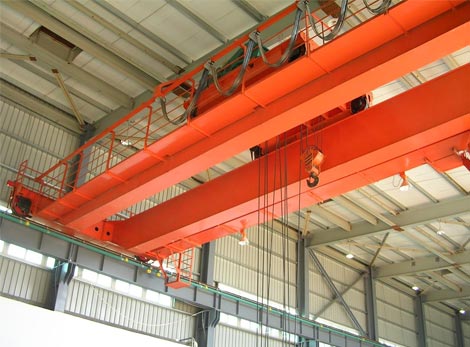make Double Girder E.O.T. Cranes are designed in accordance to duty classification as per IS-3177 & IS-4137. The structural parts of the cranes are designed and manufactured as per IS-807. These types of Cranes are used for heavier loads and longer spans. They offer the advantages of low headroom as the hook can be lifted up between the girders.