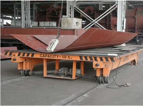 have a wide range of Transfer Trolleys to suit different jobs and applications. These trolleys are used on Rail/Square bar for definite travel in places like painting shops, quarries, warehouses and multi- bay workshops for transferring loads. The trolleys are non-standard and designed on the basis of pay load. Power feeding is done through Cable Reeling Drum, Insulated Shrouded System and Contactors Power Systems.